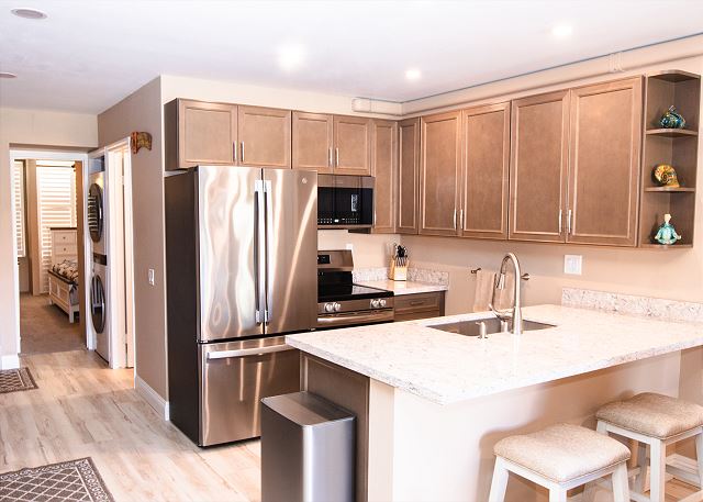 Full Kitchen, Refrigerator, Coffee Maker, Microwave, Toaster, Cookware, Dishwasher, Electric Stove, Cookware/Pots/Pans, Silverware, Oven