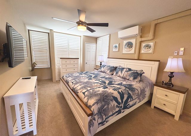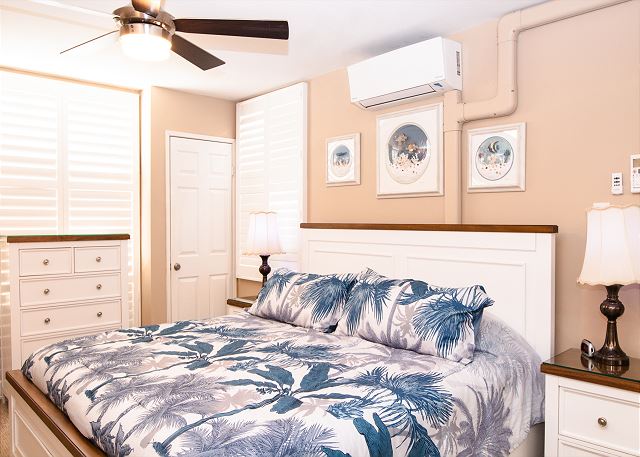 Air Conditioner, Bed Linens, Beach Towels, Ceiling Fan, Large Primary Closet, Ironing Board
